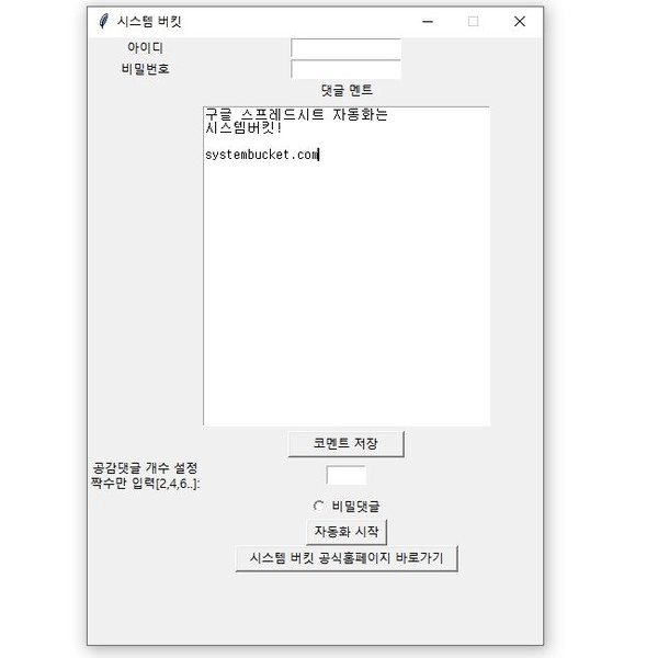 🔸 [코멘트 저장] 버튼 : 작성한 댓글 멘트를 컴퓨터에 저장합니다. 프로그램 재시작 시 자동으로 불러옵니다.